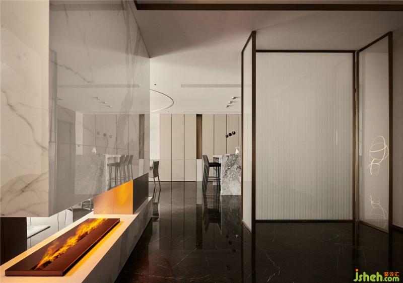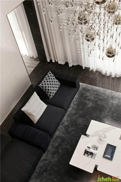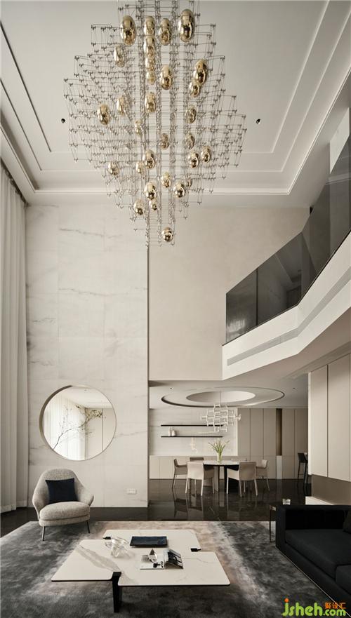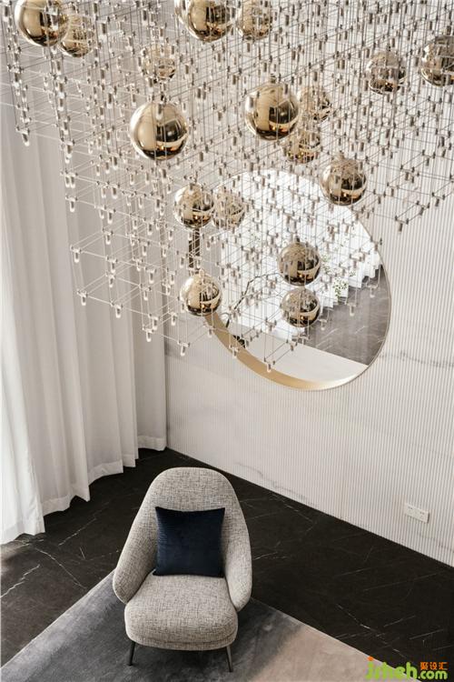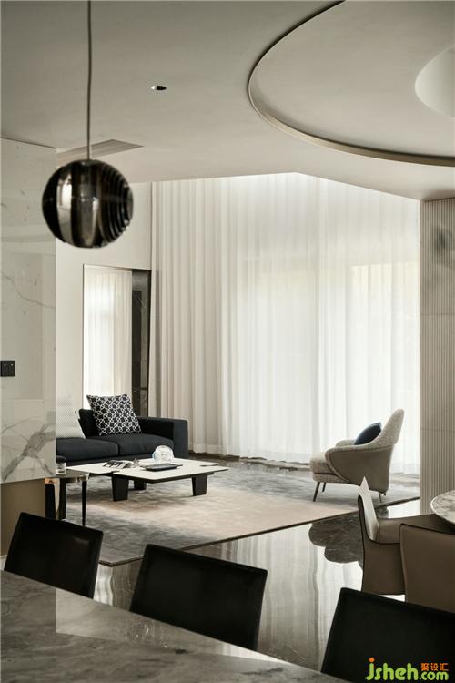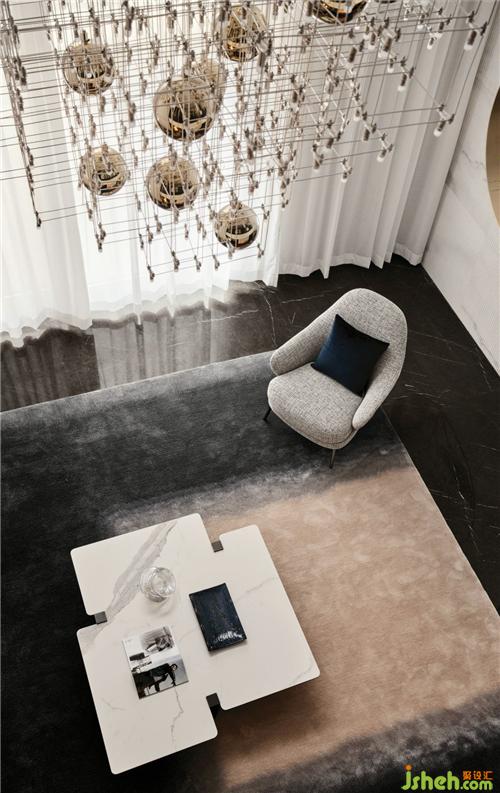 客厅小到摆件、抱枕,大到沙发、吊灯,无不给人一种奢华高贵国际范儿的感觉,设计师采用米兰的现代极简风格,极简精致而简约,同时透露着浓重的设计感。白色大理石也给这高贵的空间加上浓厚的一笔韵味。