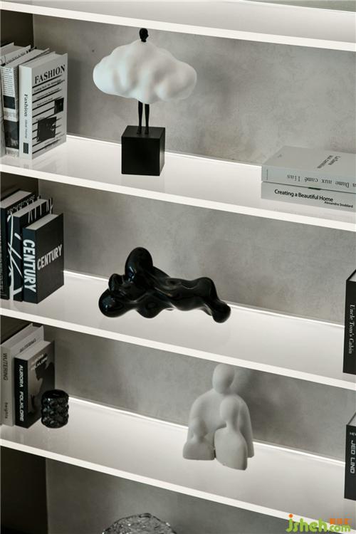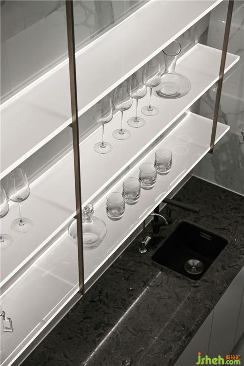 设计师利用地下室天然储物功能和足够大的面积,使用开放格来作为储物与展示,使得整体空间宽敞明亮;在这静谧的私人空间,配备上超大电视屏幕与环绕立体音响,打造出一个私人影院;加入家具的跳色,加入亚克力与灯光的交错,加入奢华的金属,摆脱沉闷的以往地下室印象。