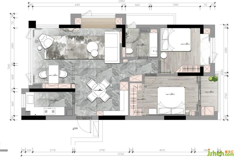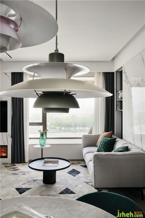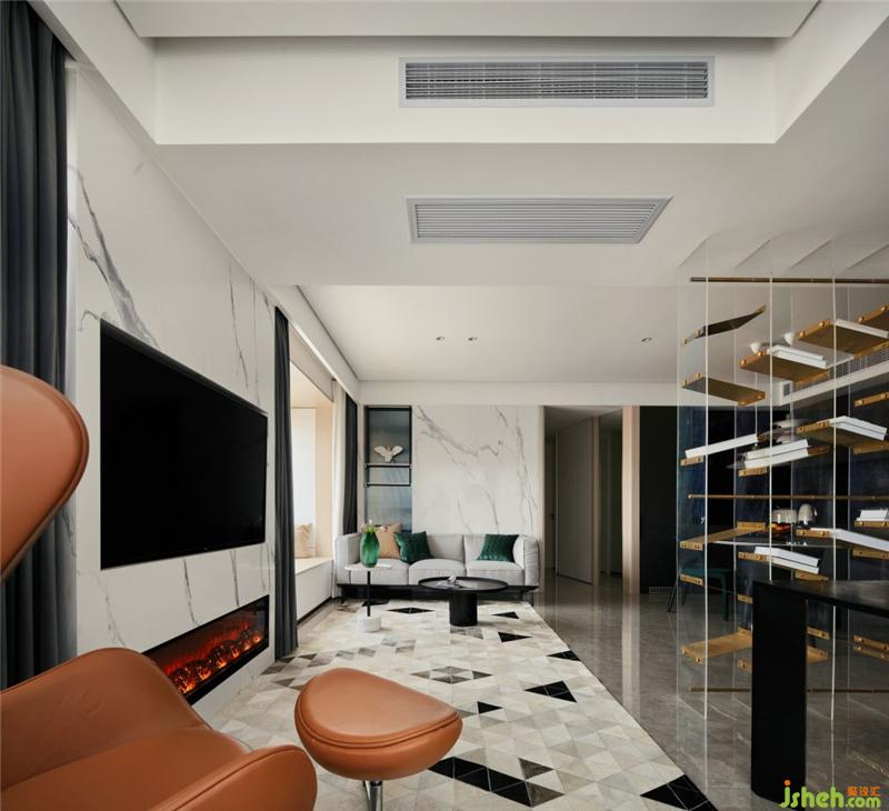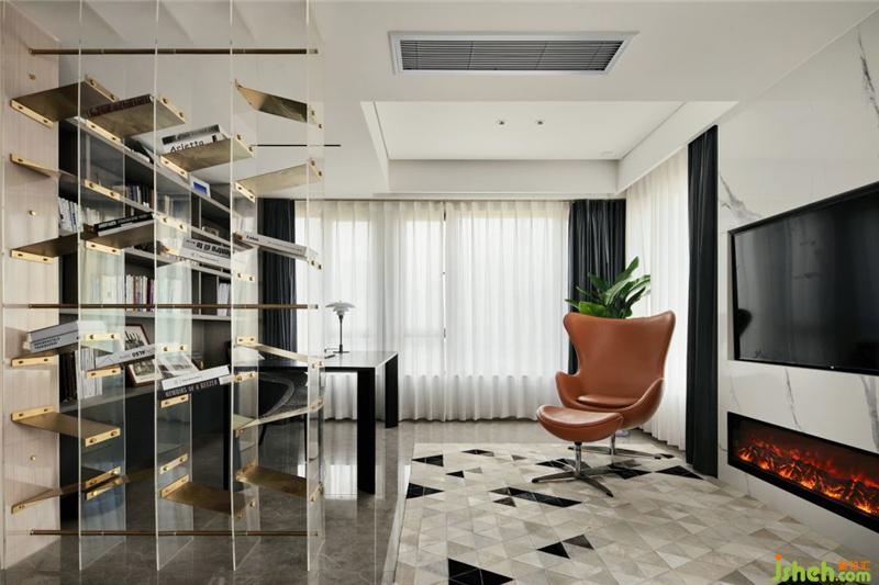 关于设计:房子是三房的边套户型,经过设计师的推荐,关于原客厅旁边的房间两面采光的问题,客户选择了弱化房间,把书房融入客厅,杭州装修设计这样客厅配置和体量远远超过了该户型给人原本的相像,同时大大提高了采光效果,也符合当下业主的生活方式。