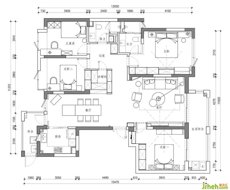 关于规划:设计师在一番拆改之后,客餐厅视觉空间扩大,并且变得整齐开敞,可以满足孩子们在室内奔走玩闹;休息区过道调整之后,杭州装修设计去往各个房间的动线也清晰起来,互不干扰;共用衣帽间大大增加了家庭的储物功能,同时衣帽间位置的调整,使入户也变得通透爽朗。