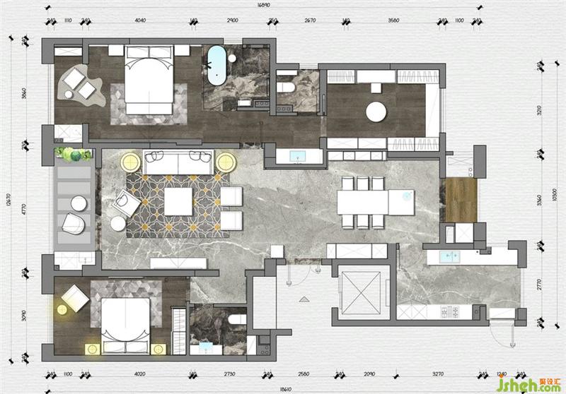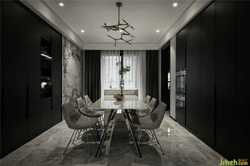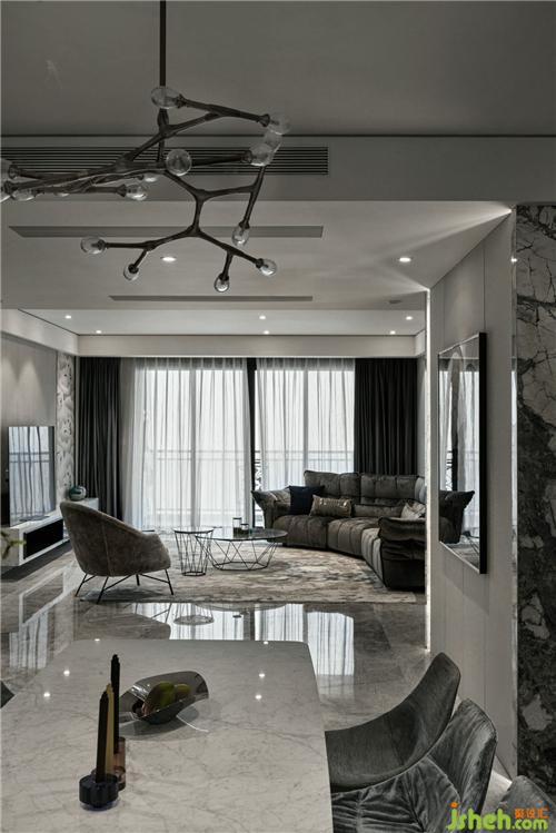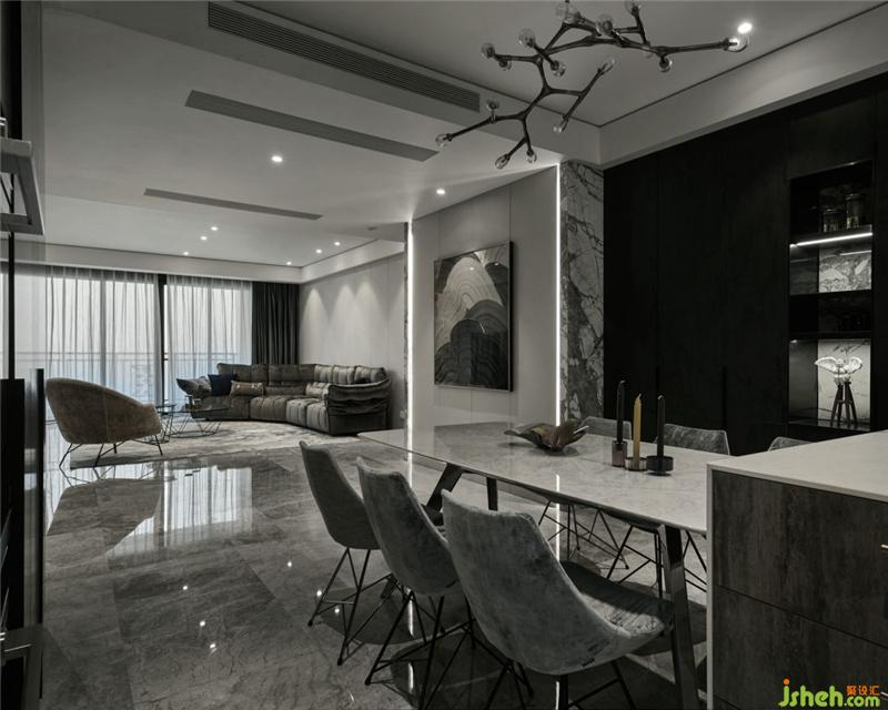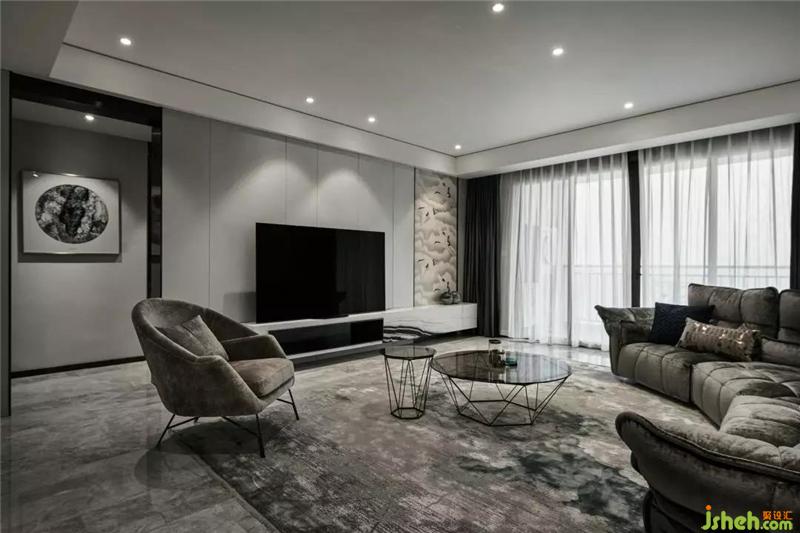 “ 总是爱看钱塘岸边的波澜变化,配以江面和对岸的连绵景色,遂购下这套高层,杭州装修设计自然内部修葺也要符对这开阔意境:黄鹤一去不复返,白云千载空悠悠。翱翔万里,来去千年。”