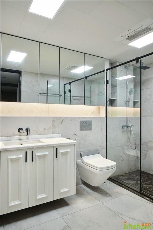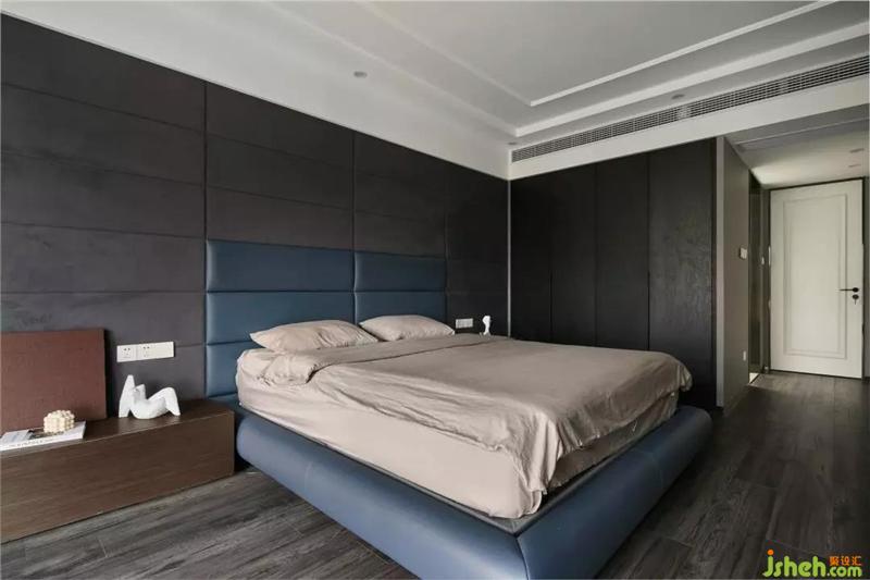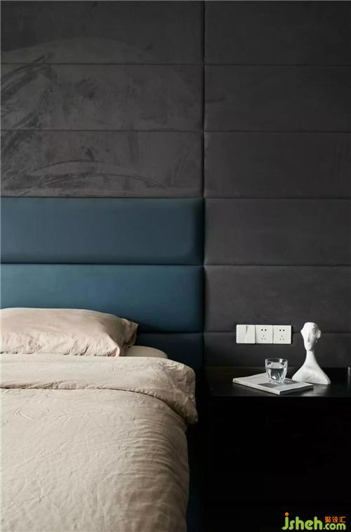 主卧整体深色系,搭配蓝灰色的床体,简洁大气,一如百年前包豪斯的先辈们的单纯形式探索,杭州装修设计纯粹到极致就是美,而形式感也可以是美学产生力。