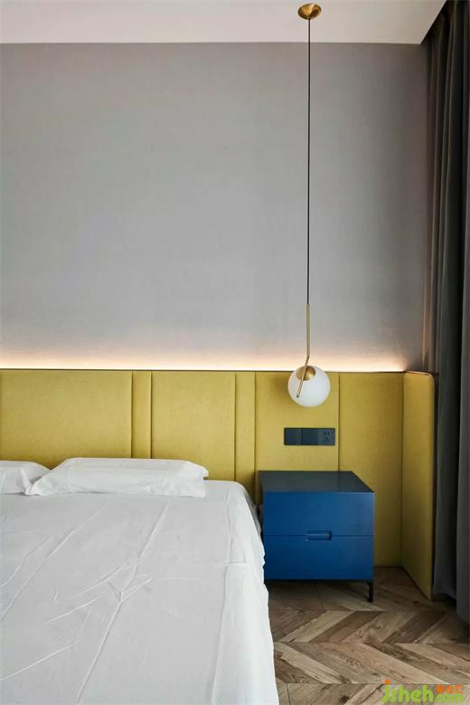 蓝色和黄色让有限的空间迸发出活力,通过合理的布局和活力的渲染,让整个房间变得精致。