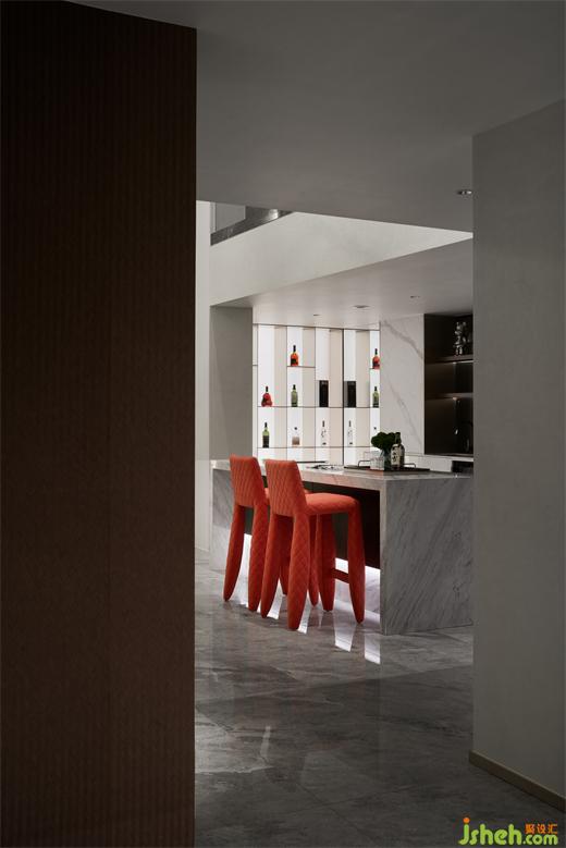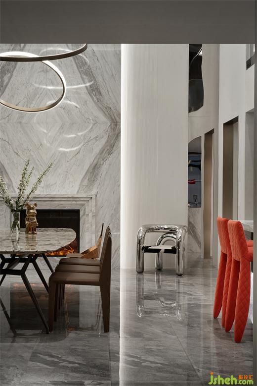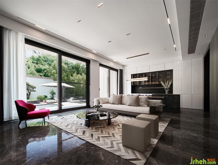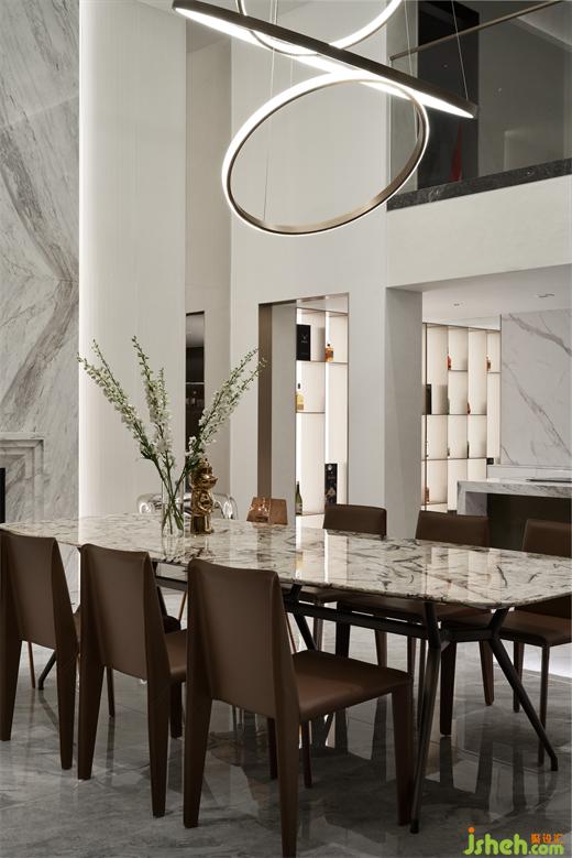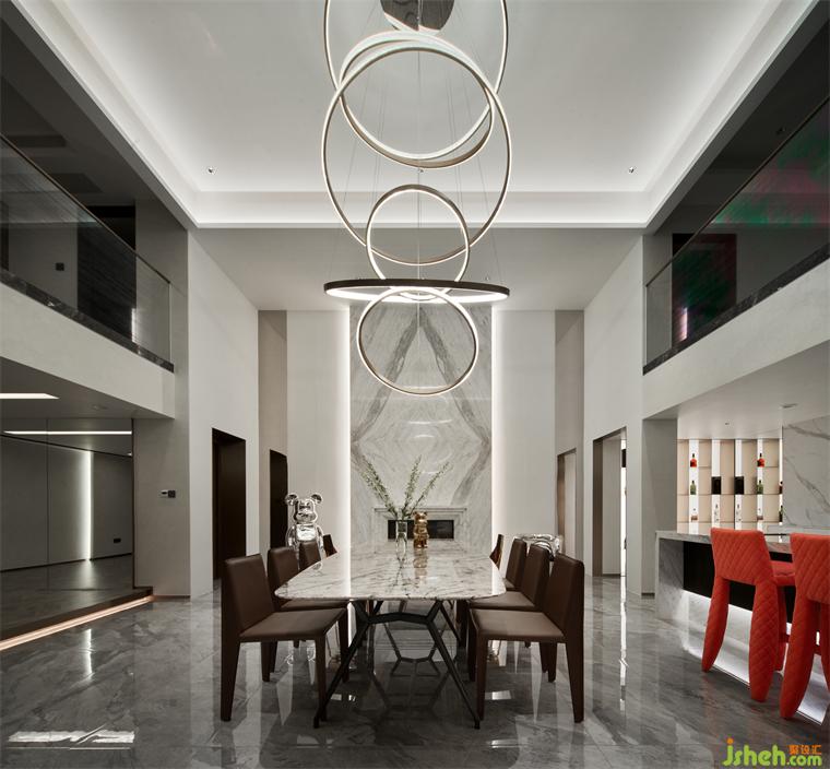 别墅装修设计以会客区的长桌为核心,辐射地下室空间的各个功能区域,展现整体大而开放的体量,与极强的互动性。
