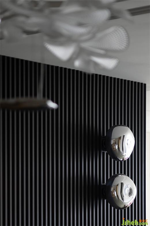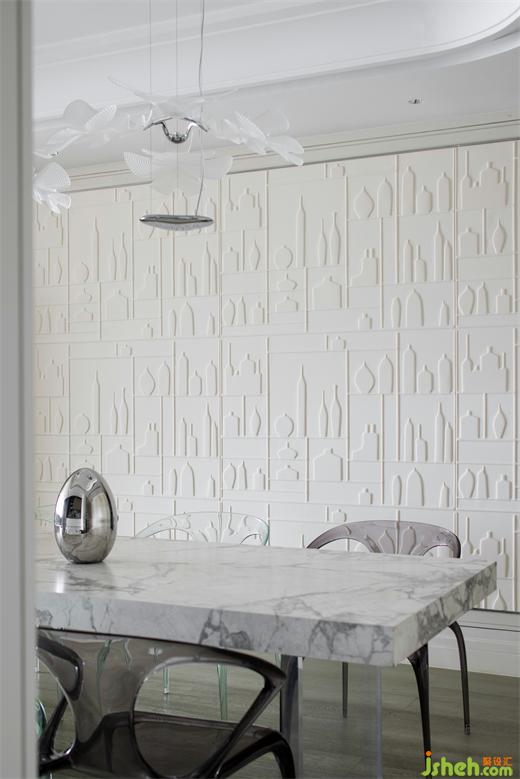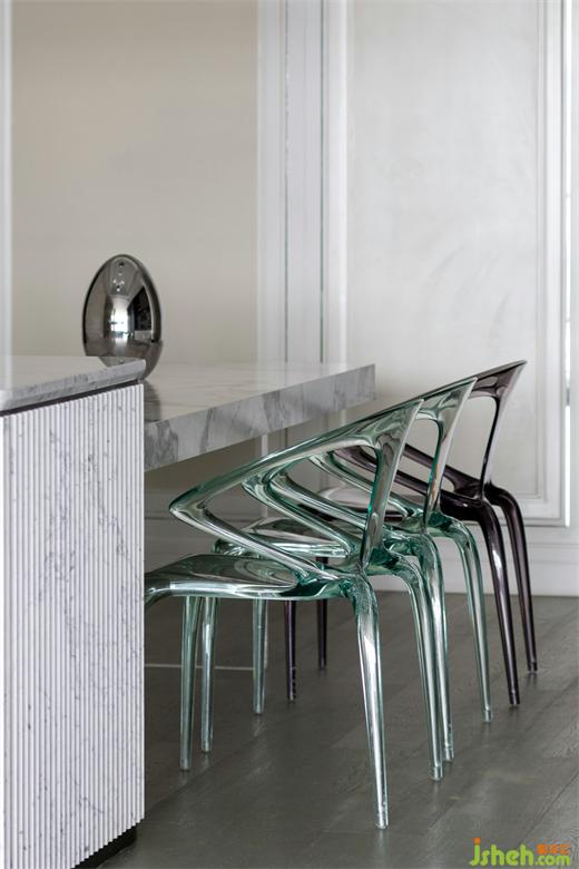 上海豪宅设计透明亚克力支柱呈现出奇妙的悬浮感,同时在造型和材质上和增加的书房空间有机的结合在一起。