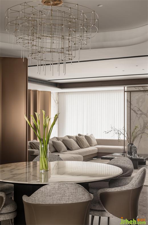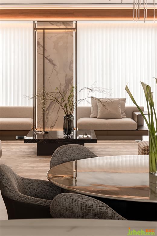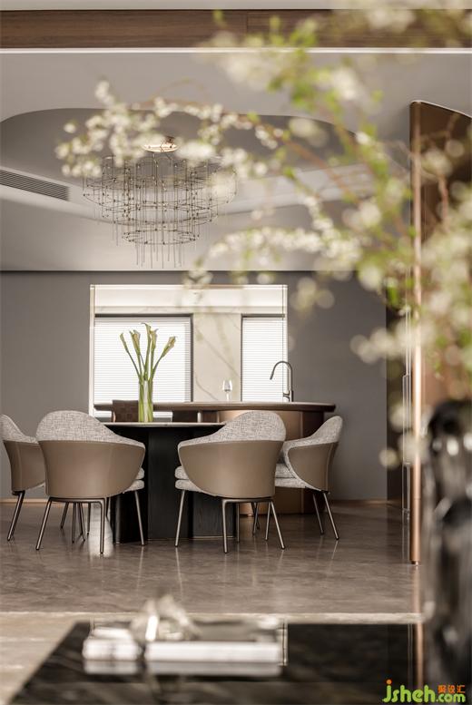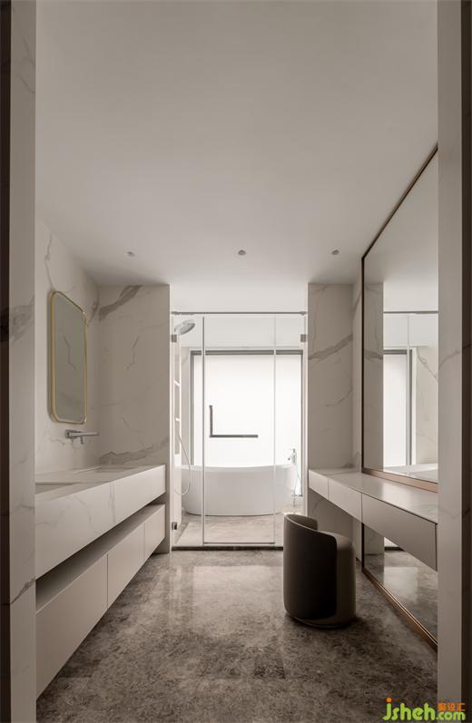 明确的功能划分,业主夫妻与爱女的生活单元围绕步入式衣帽间做彼此连通而又相对独立的环绕动线。三个卧室占据了几乎一半的住宅空间,并都配备了高品质的卫生间,杭州大平层装修设计让每个家庭成员都能够享有尊重与隐私,共度温馨舒适的家庭时光。