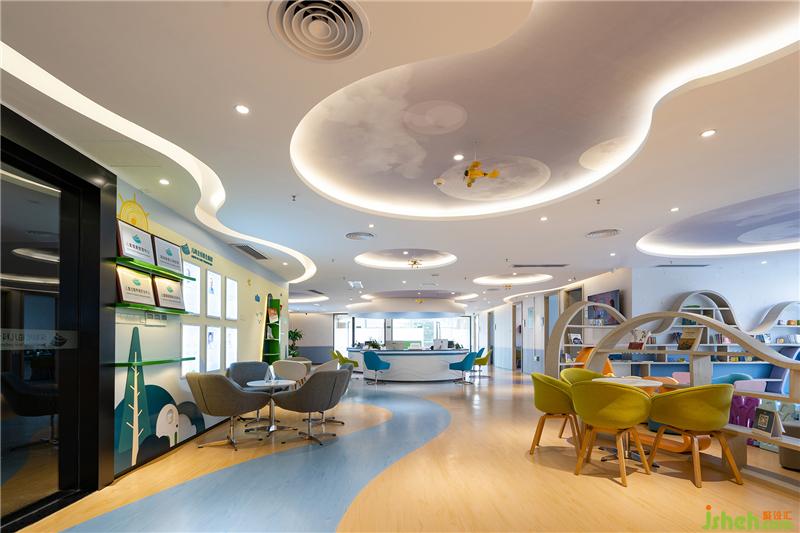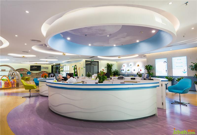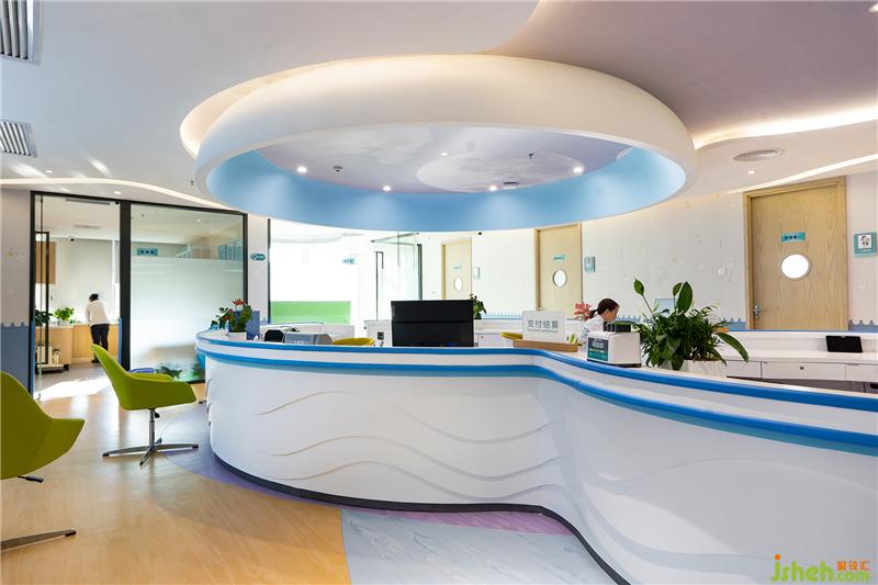大厅中间一个8字弧形综合服务导台,让护士能从各个角度注意到前来就诊的家长与正在玩耍的小朋友们,在服务导台的周边还设置了休息区,让候诊的家长们享受到最贴心的服务。儿童医院设计