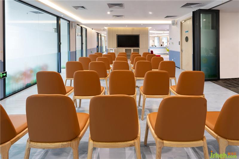 同时隔开形成一个很大的开放式家长与专家的交流空间。在这里,医生专家通过大的投影与电子屏幕,为家长们提供咨询和解惑,并为大家讲解一些相关的育儿知识。儿童医院设计