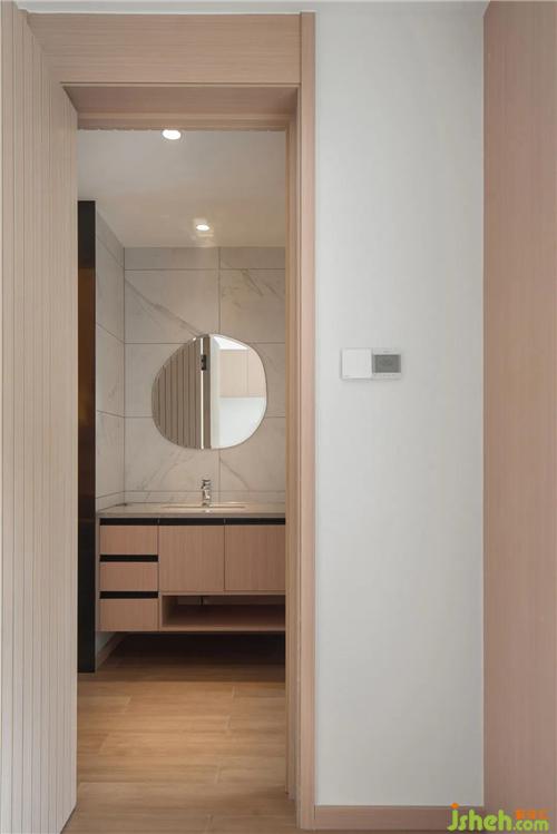 空间色彩以白色为底蕴,包容着浅色木纹纹理、沉稳的白色肌理涂料相互作用于空间内,木质纹路清浅带出自然质感。