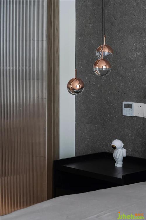 卧室连接内外空间材质,点缀深色木质加之石材显得沉稳充满质感