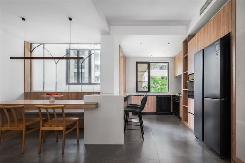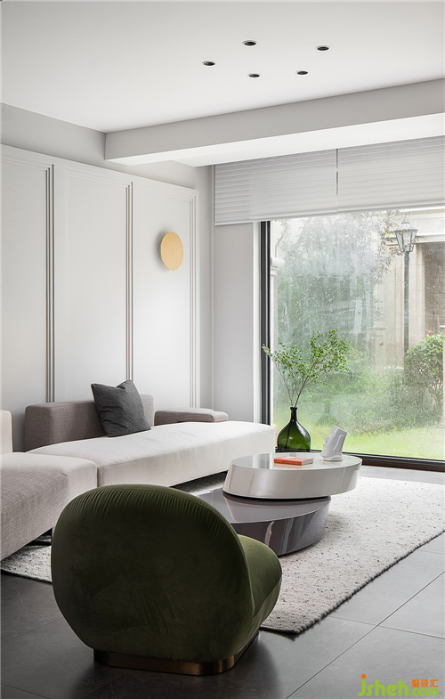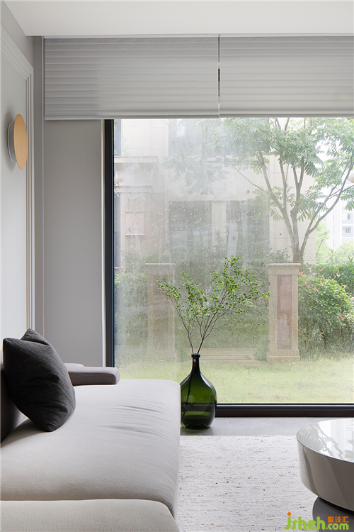 视觉空间上,我们更换了客厅原有门窗,保留了最少的分割与框架,将户外花园完美映入眼帘,利用玻璃的穿透性制造空间的延伸感。