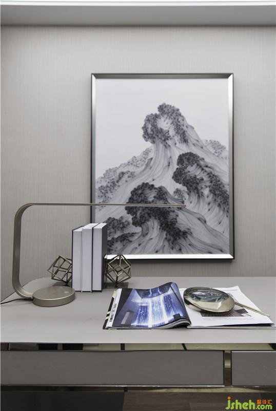 “山舞银蛇,原驰蜡象,欲与天公试比高。”书房乃攀登之所,一抹古意足以慰藉心灵,一丝个性足以勖勉神思。空间优雅谦逊、低调内敛,深沉且不张扬,风度翩翩且气质高雅,流畅协调的格局。位于其中,登堂入室,不禁感叹,“俱往矣,数风流人物,还看今朝。”