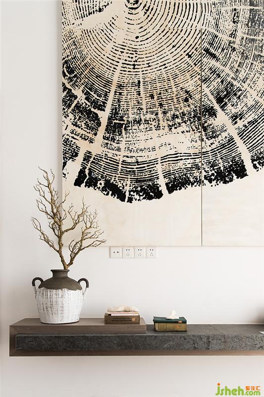 卧室中设计师选用灰麻花的基调,听似容易落入乡野俗套,但采用质感满满的墙壁布置与简单大方的家纺,加以线条的捋顺,一唱一和间,便让入住者身在尘庐,也能获得大自然的馈赠。