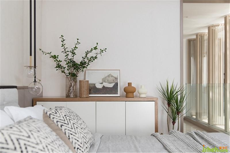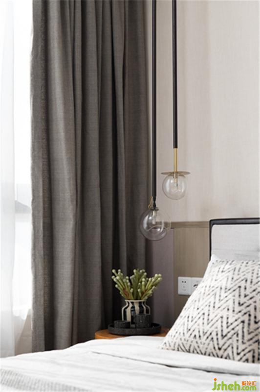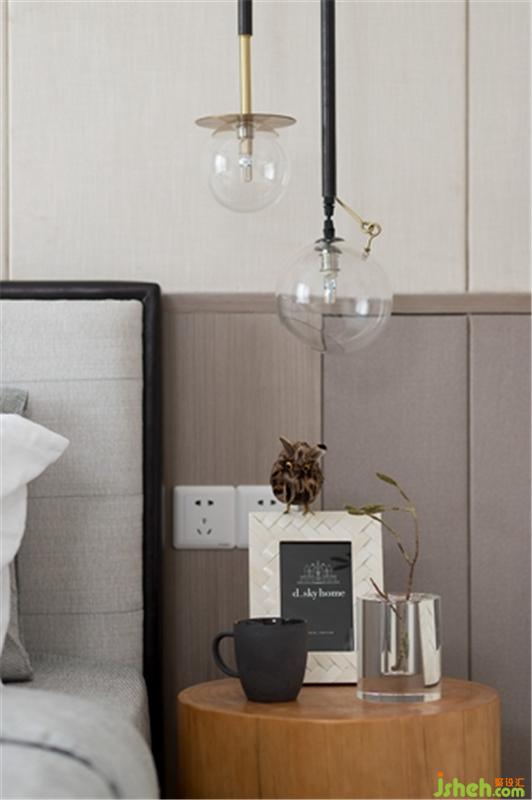 餐厅与客厅界限实则并不严格,使得空间感更加通透。总体和谐的场景使人惊叹各个感官上的舒适,再坐下细细感受,这几何错落的吊灯、一气呵成的墙壁云纹、古朴别致的陶瓷、一藤一蔓……都是触类而长、巧夺造化之工。