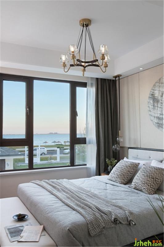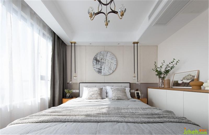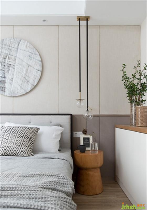吊灯的线条与浅色布局使得房间有奇妙的阔大感,墙上好似白桦树皮般的挂画好像在诉说布置者的一段年轻的故事。