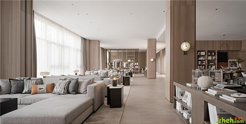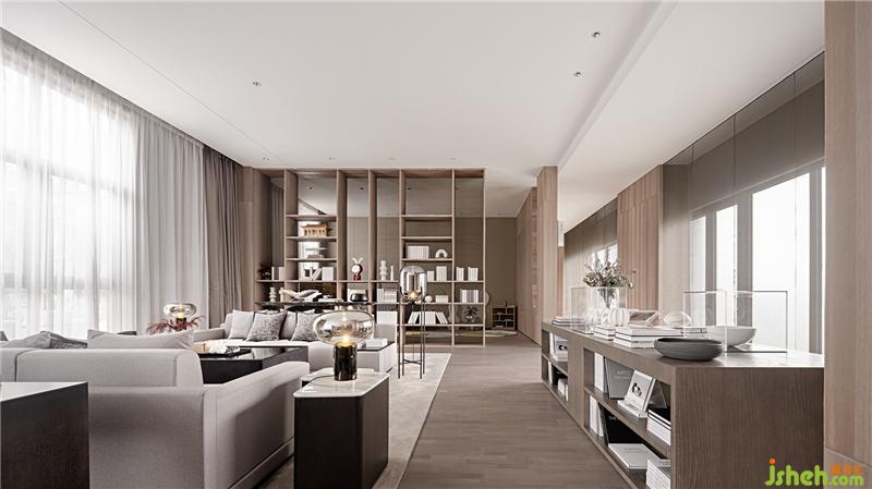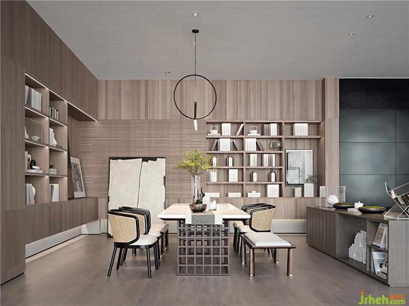 书吧洽谈区以整体的暖色调为主,木色的整体空间营造出轻盈舒适的气氛,而浅灰色的沙发增加了沉重感,深色的配饰座椅则为轻盈的气氛增加了脚踏实地的真实感。装修公司