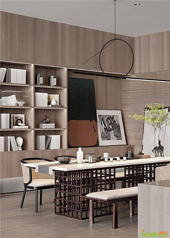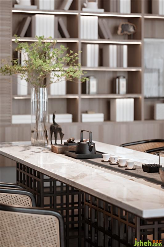 草色青青柳色浓,玉壶倾酒满金钟。在廊坊,同样可以感受到“天苍苍,野茫茫,风吹草低见牛羊。”这样的感受同样可以在茶台上得到,设计师将这一小方豪阔潇洒的天地融入进设计里,让人在沉重的钢筋水泥里也能感受到轻盈辽阔的自然。