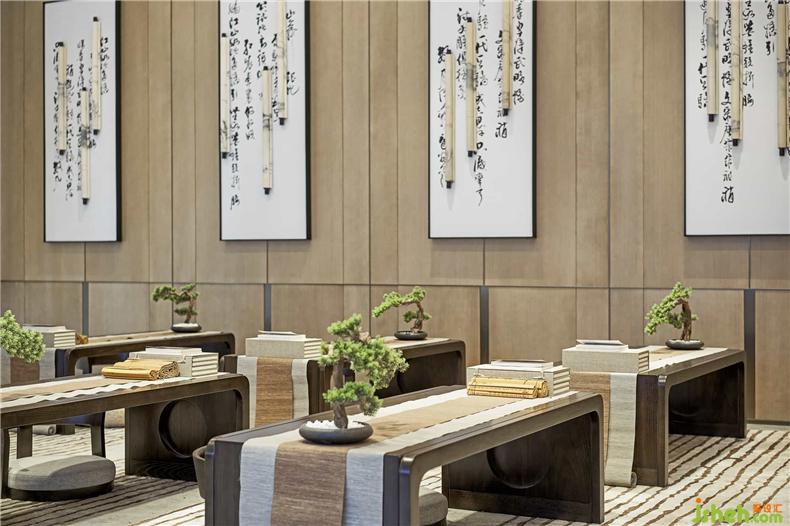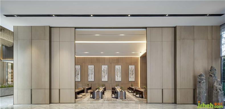 前厅是人与人沟通的初始,垂挂而下的山水图,使人一脚便踏进了素装水墨的苍茫天地间,在起承转合中得到一张“春回牛山雨蒙蒙”的临淄八景图,我们又在此处放置“牧人赶牛”的摆饰,寓意美好的祝福与期望。装修设计