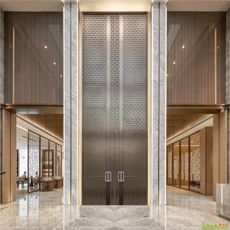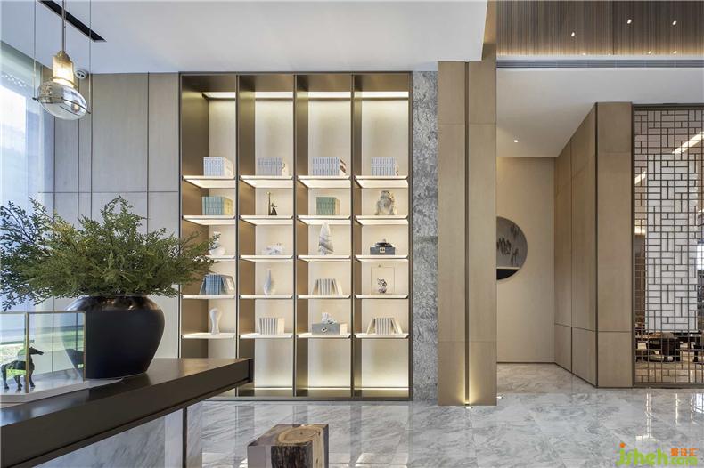 绿树成荫,郁郁葱葱,阴凉避暑,VIP洽谈区便以此为灵感,玻璃窗外朦胧氤氲,装修设计暖树染绿的盆景增添了别致的气氛,两侧的落地灯像不像为一袍“折腰”的矮槐?