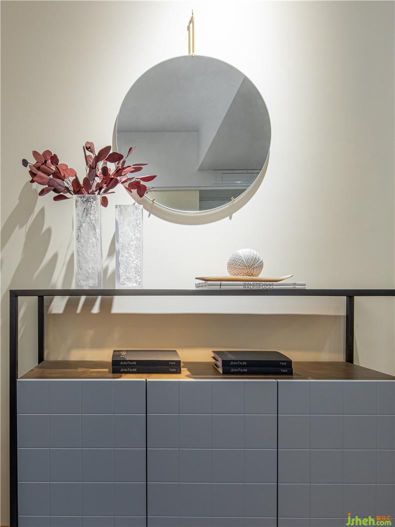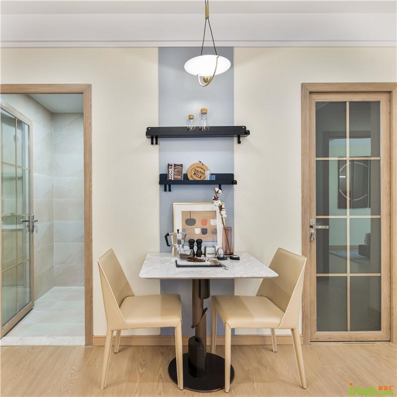 餐厅作为承载人类生活必须的“三餐”空间,是最能体现出人与人之间温情的地方,室内设计师“优雅”体现在细腻中,体现在拼接式的背景墙、精致的透明玻璃罐里插上鲜花、罗马象棋状的调料罐中。