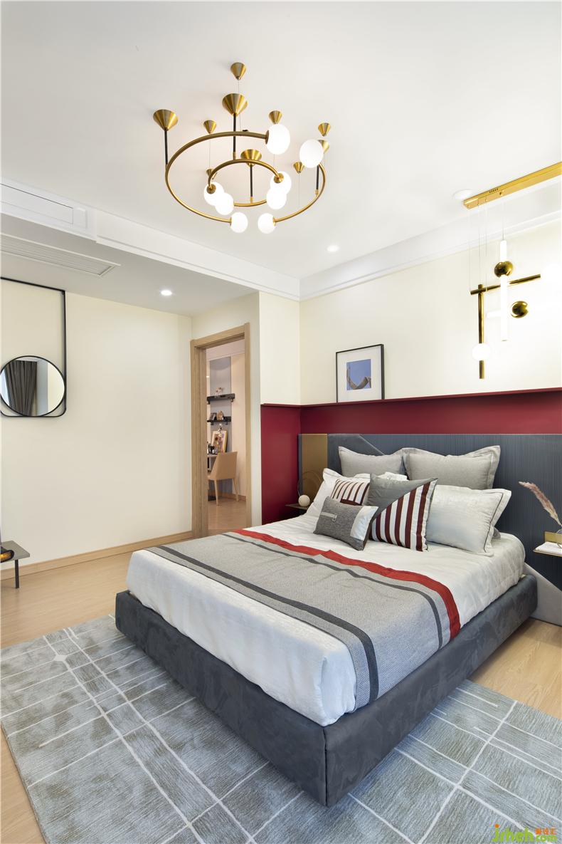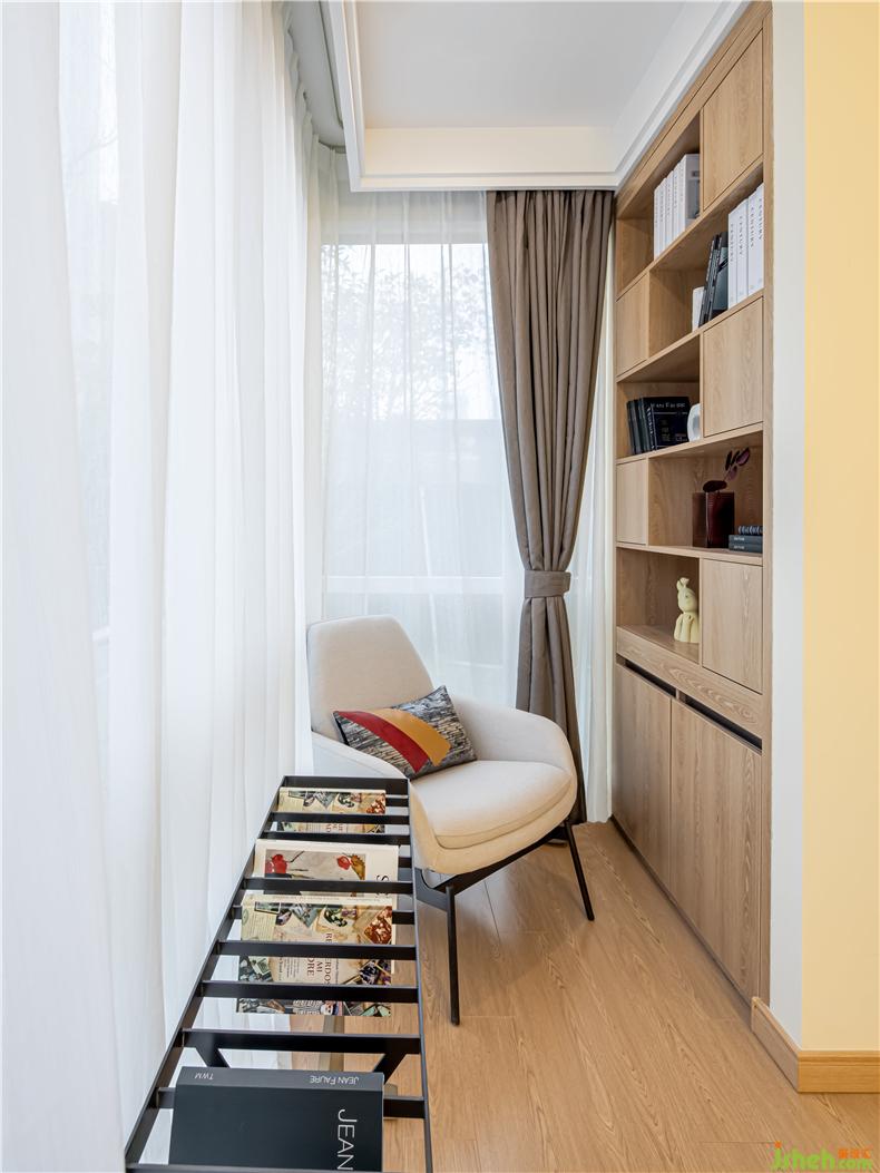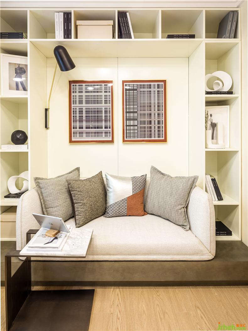 主卧用色彩引导视觉,增大床头背景的面积,削弱物体的存在感。诺大的窗户,室内设计师让阳光洒在书脊上,温暖且惬意。床头摆上香氛,在忙碌的生活之余,也能得到静谧的生活碎片,慵懒而浪漫。