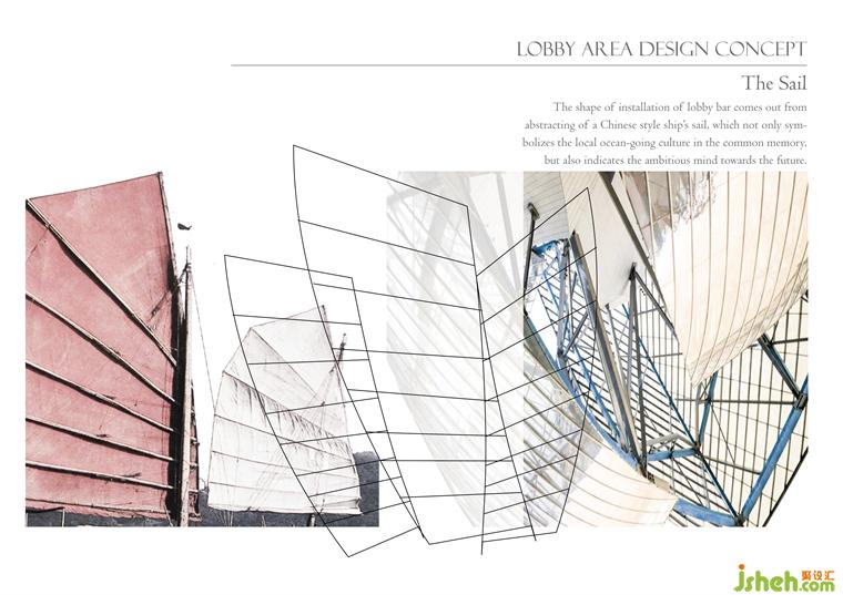 以风帆的折面造型为空间的基本造型特点,显出建筑层高的优势,强调空间的主题性及趣味性 。