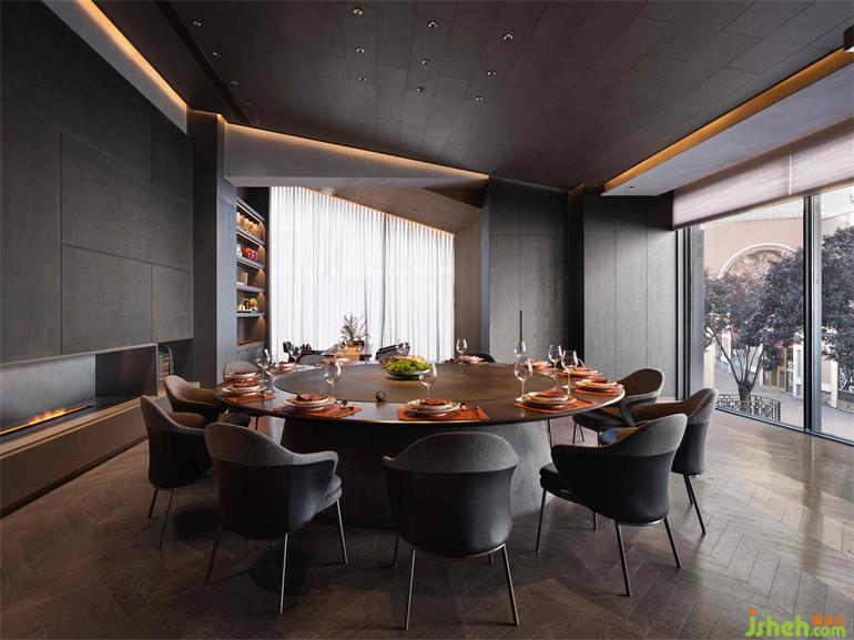 二层利用建筑本身的坡屋顶,包间以中式院落为灵感而来,北京餐厅设计了茶台、壁炉,把过去的记忆,家的味道用现代的方式表现出来。