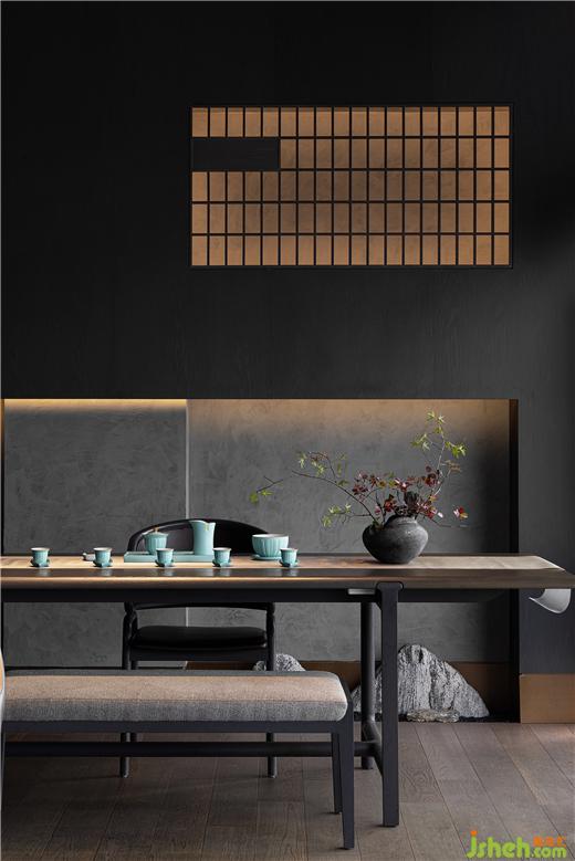东方的美学中,总有一种沉淀静谧之感,去承载不同的情绪。喜瑞餐厅设计通过空间建构,回归礼序。融入了众多中式雅韵元素,墙体与屏风上多采用中式镂空窗棂丰富肌理、古玩摆件、茶香悠远的品茗区再现中式雅韵,在大隐隐于市的餐厅中,饮茶饮酒饮人生,听声听语听闲情,享一方之自在。