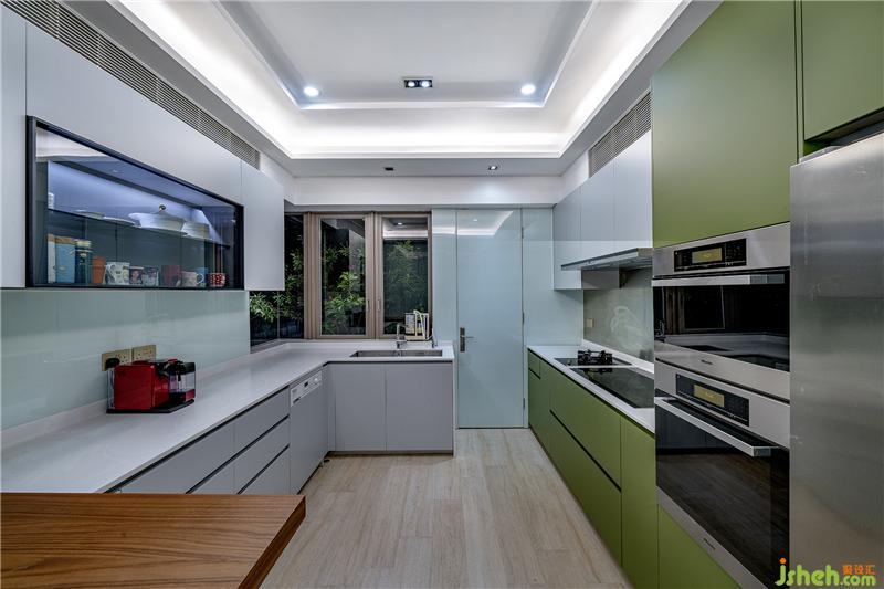 由于花园占地颇大,设计师于室外以独特线条配搭草地和石地砖,草地中央放置木质地台和各种植物,置身此绿意盎然的花园,令人心情开朗、舒减压力。