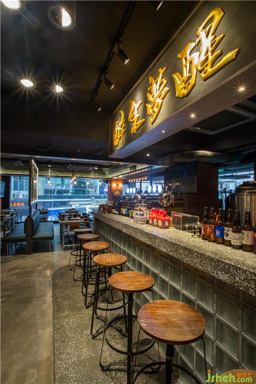 运用高低阶梯差设计将酒吧区从整体中稍微区隔开,亮眼的“醉生梦醒”招牌让这里更添享受当下的氛围。等待时坐在水磨石吧台前,享用酿酒师新鲜酿造的季节性手工啤酒,让舒缓的信号传递整个身体。