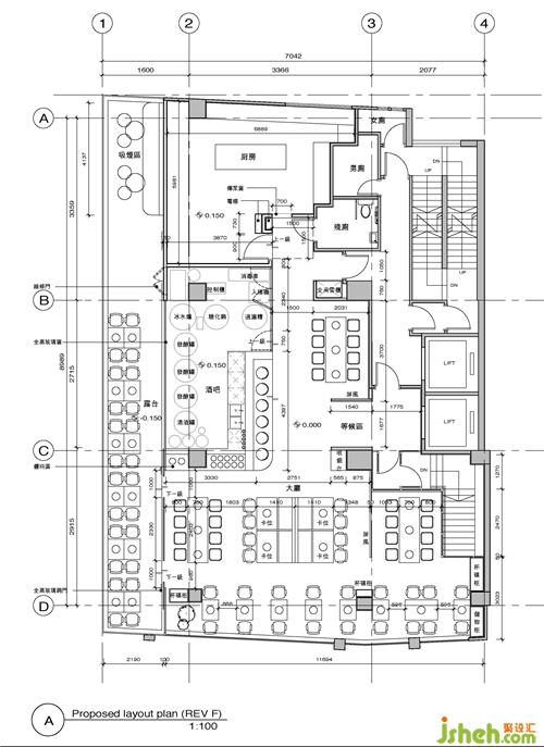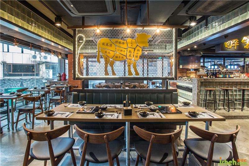 用餐区中央放置一面金属网标牌,将金色的公牛部位图摆放其中,昭示店中所供应的不同部分的牛肉,也让顾客深入品味牛肉的各种魅力。同时用灯光照亮整个标牌,让这里成为独特的艺术装置区,吸引过往顾客的视线。餐厅设计