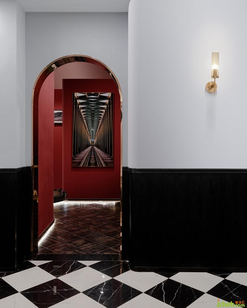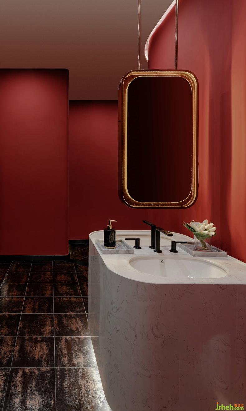 红色的墙体装饰,使整个空间变得更为热情和活力,为整个空间添加了更多的想象力,同时使不同的空间表示形成统一的整体。具有强烈的舞台感。像火焰般燃起了整片空间。