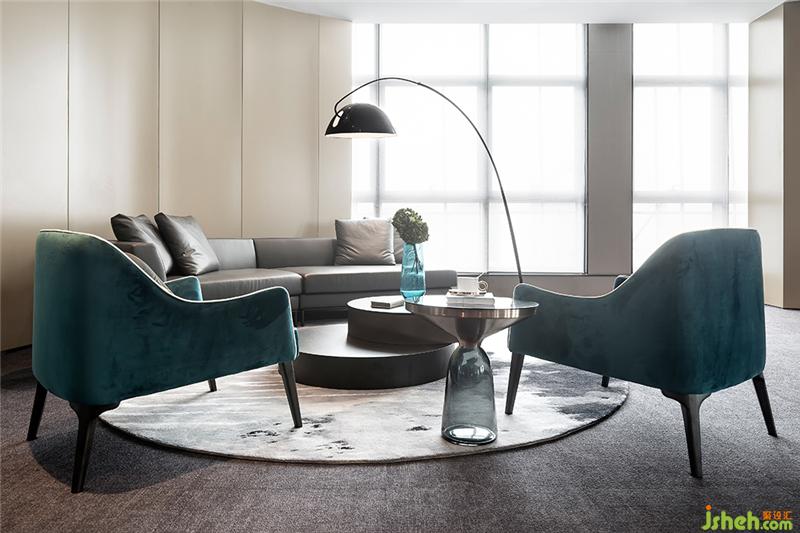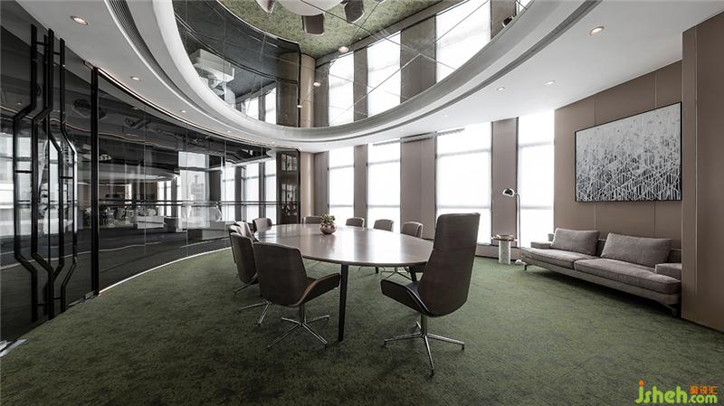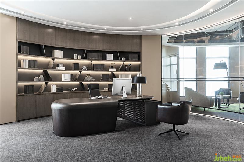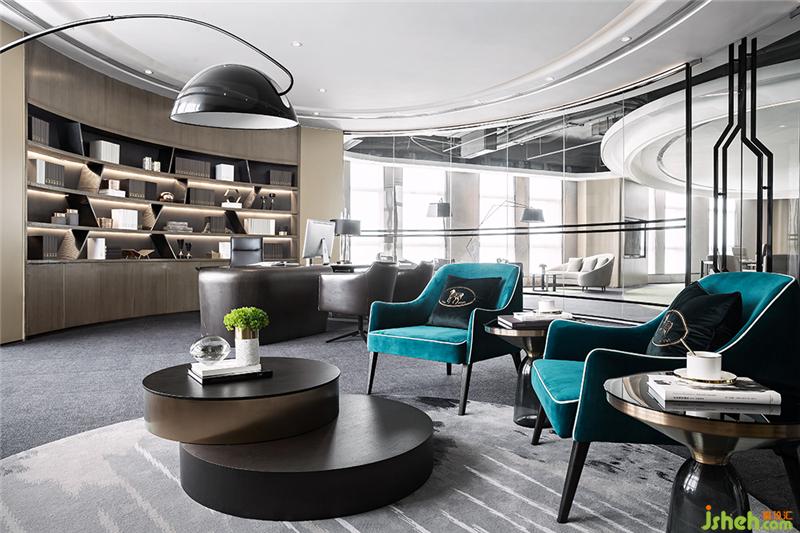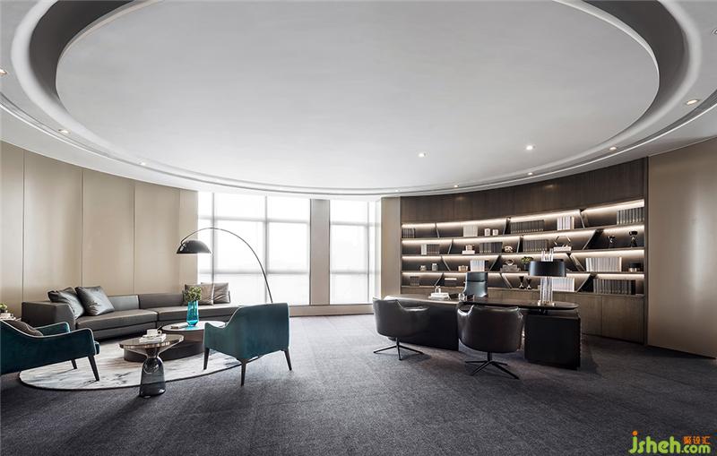身似行云流水,心如皓月清风。连总裁办公室的块面关系都是自由奔放的状态。视无界,境自宽,大弧度落地玻璃隔断,彰显了领导者虚怀若谷的气度。室内办公及会客空间所有物件的组合形式同样顺应着建筑的弧形而围合,在这样的环境中待人接物,既温文儒雅又不失风趣。