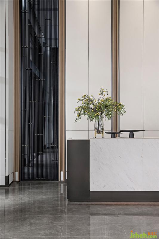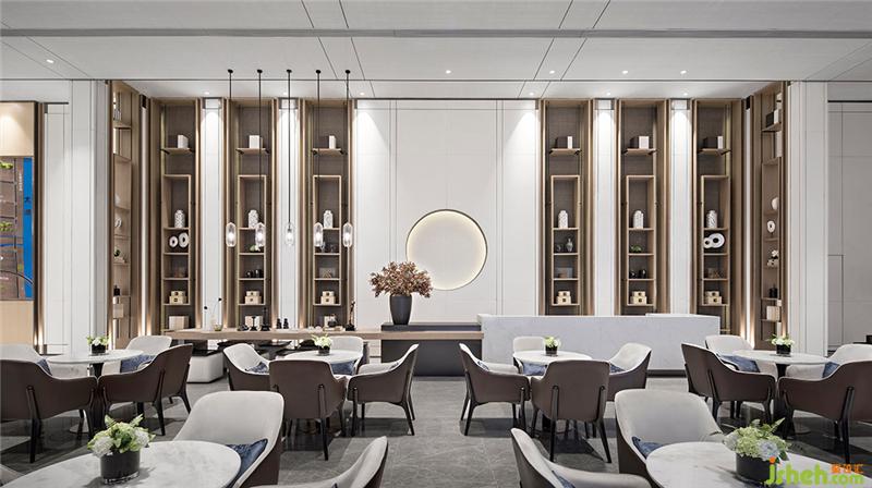 本案项目地处江苏宜兴市宜官公路南侧与钱墅荡路东侧交叉口,踞东氿,享繁华,外揽东氿湖盛景与双水岸风华,内享近3万方新中式意境园林。基于「东方院境」的项目定位,在项目销售中心的空间设计上,EHOO易虎设计团队以中国山水画为背景,通过提取具有代表性的传统元素和现代元素进行艺术融合,打造出高远、深远、平远的诗意空间特质,大繁至简,在有限空间内延伸出无限的意境,以现代东方的设计手法,诠释新中式的气质美学生活。会所设计