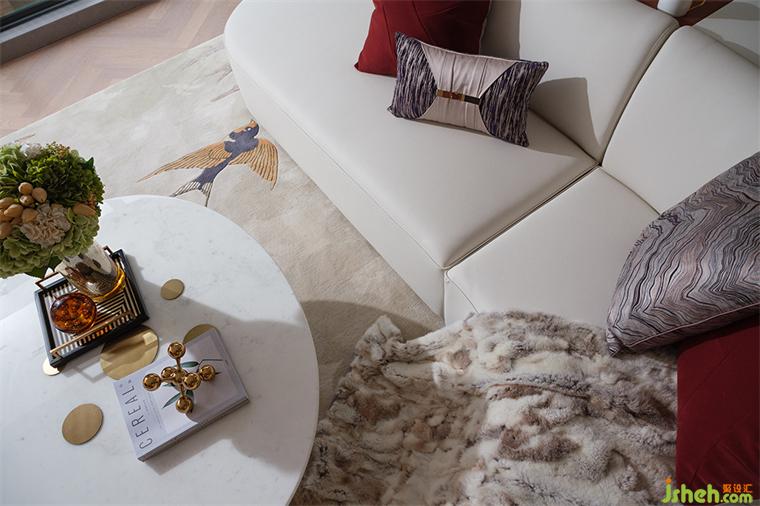 在传统文化中,燕子是吉祥的象征,燕子来家里筑巢预示着主家安定祥和、样板房设计家宅兴旺。绣着飞燕图案的地毯,为空间注入了几许和谐美好的自然意趣。