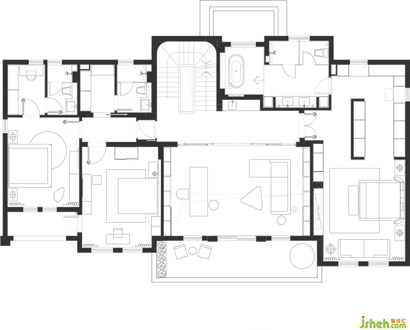 茶室设计以简洁的线条与澄净的材质,亲切平和地呈现温润而安然的理想生活形态。材质的运用极其考究,贯穿连续的本土特性,加之统一的“弱对比”色调,将亲近自然的精神融于雅致和谐的整体氛围,赋予归家从容安定的感受上海别墅装饰。