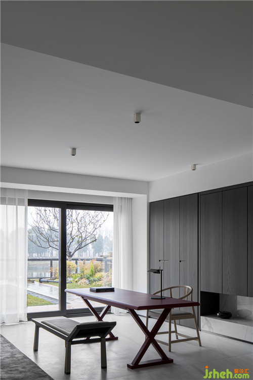 空间沉淀过去,满足当下,承载未来,讲述时间的故事。设计师以极简的设计语言和表现形式,秉持“大宅至简”的设计理念,将多余的东西剔除,希望为空间赋予更多的精神内涵。