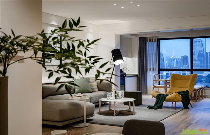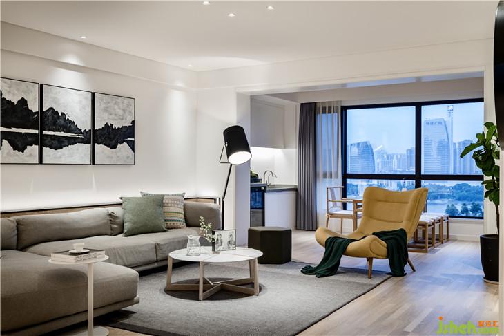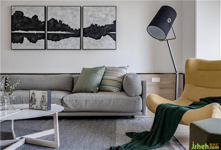 在客厅,大面积的白,以足够的包容性去承托静谧祥和的空间氛围。在色彩选择上,配合业主的性格,以理性的浅灰色,塑造不露锋芒的沉稳、优雅的空间气质。再以一抹暖黄色添上几许暖意,让空间回归温暖、舒适的基调。