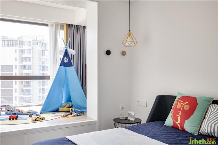 次卧的部分,不同的色彩营造不同的空间个性。女孩房以粉色塑造天真浪漫,男孩房以天蓝色塑造纯净朝气,父母房则以靛蓝塑造沉稳大气。