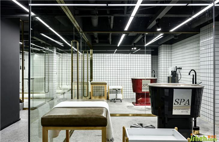 二楼休闲区,延续前台大厅精致、浪漫的个性,植入甜品咖啡,打造放松的等候时光。材质的碰撞依然在这里大放异彩,皮革、金属、木质材料、绒布等现代而质朴的元素诠释空间的安静力量,为每位受众创造一个美好的沉浸式体验。