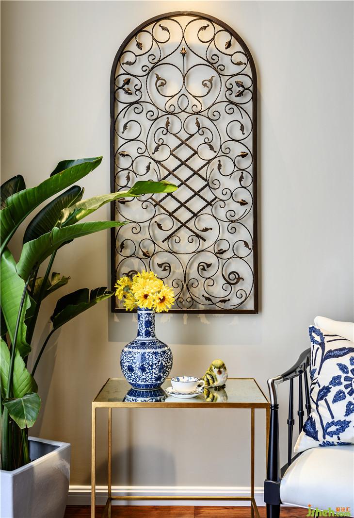 客厅,设计师在美式风格与异域人文风情中提取精神内核,简化线条,用丰富的软装配饰赋予空间精致、灵动的生命力。