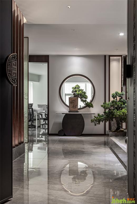 本案会所设计项目地址位于昆明市中心高端写字楼顺城西塔五楼,在平面规划上根据风水先生看的方位,董事长和财务办公室确定在平面的位置,厨房和卫生间的下水也只能在临近排污管的位置,因接待主要以外送为主,厨房功能以临时使用为主。