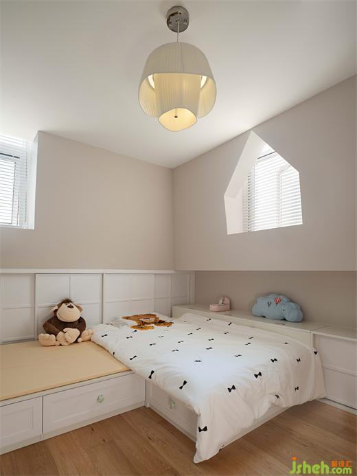 整栋大楼外观是一个法式的设计造型,楼顶是有斜顶铺瓦片,所以户内二楼几乎都是有斜角的顶面,给人带来一种欧洲风情的感觉,于是我们保留了它原来的设计。