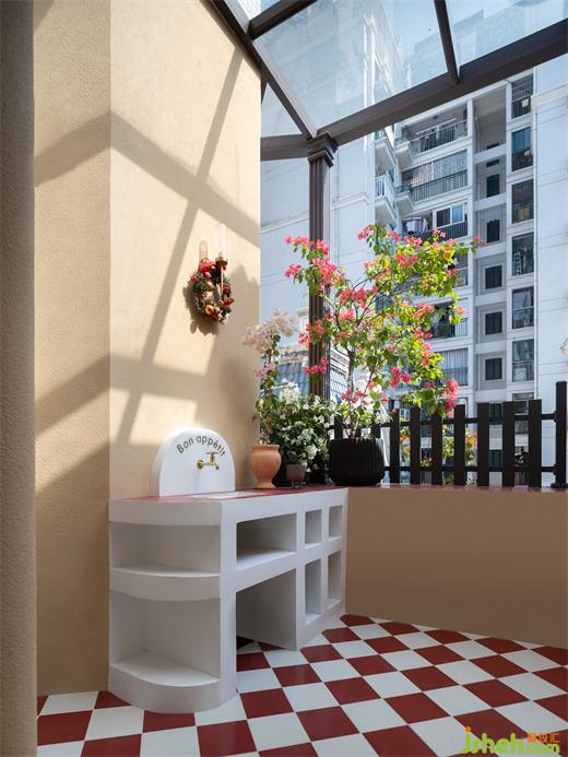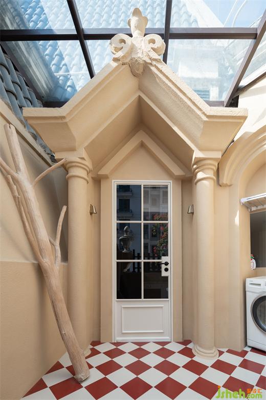 广州复式设计从厨房出到晾晒阳台,虽然是洗衣阳台,但它也需要“仪式感”。门头保留了它原有的欧式建筑设计,做了一层更有立体感的艺术肌理漆。业主自己亲手设计的洗手台尤为可爱,一股浓浓的法式乡村味道油然而生,手工的红色马赛克瓷砖,搭配古铜的水龙头,加上房子本身独特的外立面,让人疑是置身地中海的阳光中。