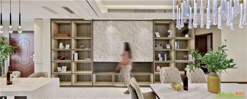了解到业主有良好的阅读习惯,因此设计一个超大的综合性书柜,可以放置心爱的物品和书籍,随时浏览犹如跟曾经的自己喃喃对话,恰到好处的藏光, 让空间更加明亮而富有层次感。厨房按现代,舒适,卫生,环保标准进行设计,采用大理石打造,搭配出一个实用、安静又不失现代感的烹饪空间。室内设计师