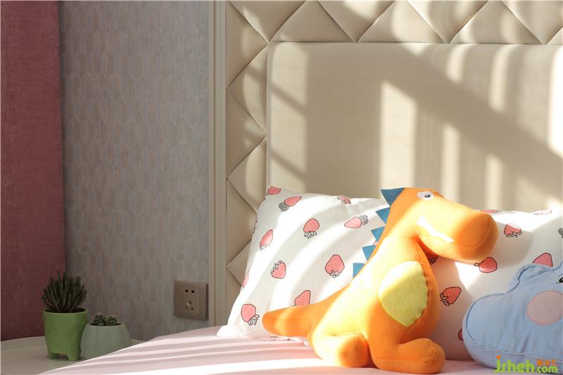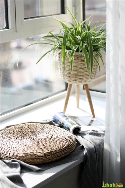主卧中有一处飘窗设计,随意摆放的两个软垫作为搭配,让飘窗的冷硬中也有了一点儿柔和与舒适感,闲坐于飘窗之上,吃着自己喜欢的点心,与心爱的他说着悄悄话,也是极为闲适的。室内设计师