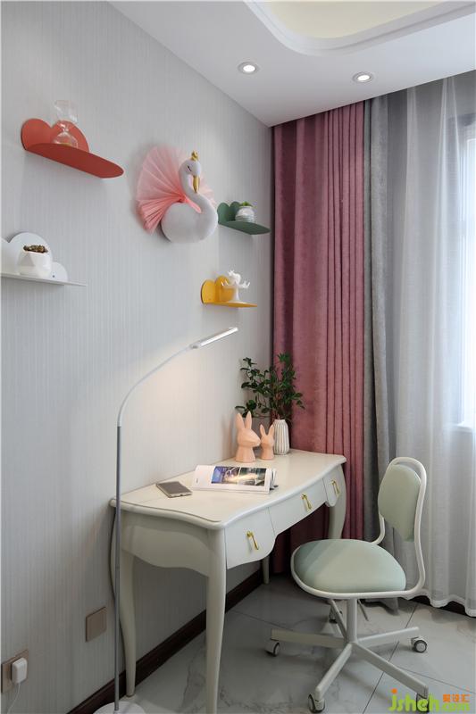 女孩房小清新色系及童趣的墙面装饰,打造出专属空间小主人的童话乌托邦,少儿童真,一颦一笑勾勒出温柔的世间多姿。