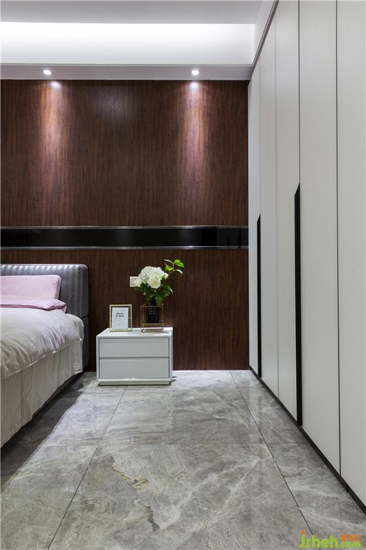 在客厅的设计中,白色暗纹大理石背景墙处理相当简洁而富品味,自然的木质色调使居室充满休闲的氛围,高档的黑色皮质沙发、精致的金属饰品、地毯等元素相互搭配、协调,彼此之间互作辅助,从材质到色彩具有强烈的港式风情, 让整个客厅不会显得单调,总体上给人一种自然简洁、和谐宽敞的感觉。室内设计师