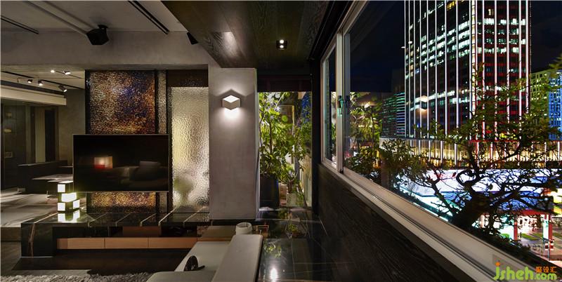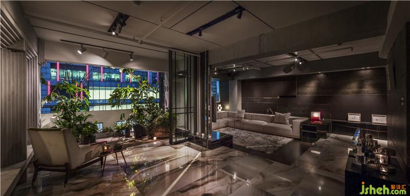 在这个高密度城市的环境中,此空间有别于一般工作空间,以反物理架构的场域为概念,将户外场景以无边际的手法向内延伸一直贯穿至内部接待区,打造出模糊室内与室外之区隔的开放式空间,令视线得以贯通、并将空气与光线引入室内,借以达到低度使用空调与灯光等耗能设施,并且感受自然空气及光线氛围,呈现一个「都市绿洲」的环保概念。
