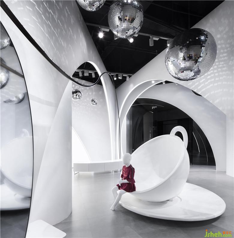 室内设计师镜面的巧妙运用,给空间增加了更多趣味。几个巨大的灯球,折射出梦中密林的斑驳光影,无限神秘又充满童心。穿衣镜与空间融为一体,在满足实用功能的同时,也为想象力造景,把这里变成了一个制造梦想、贩卖快乐的地方。